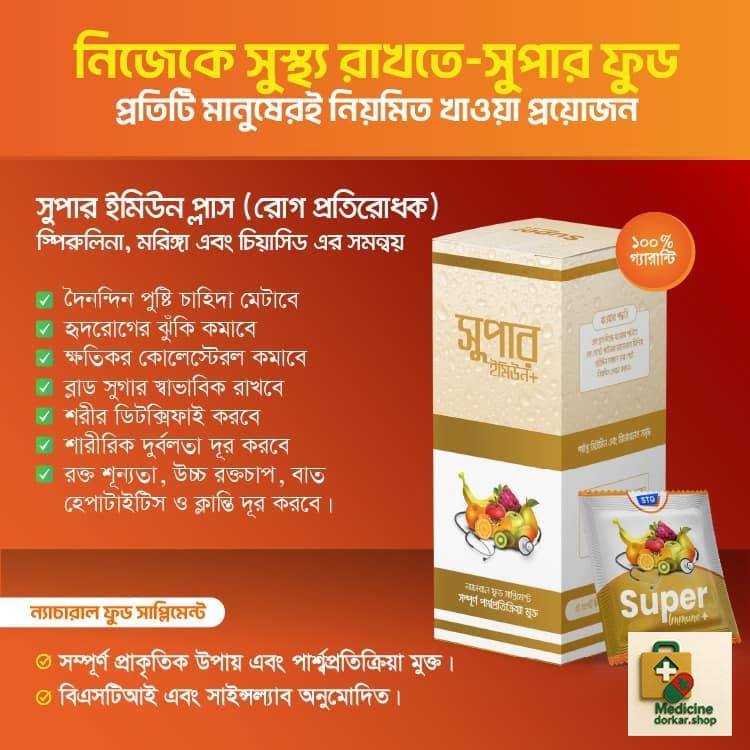 নিজেকে সুস্থ রাখতে এবং রোগ প্রতিরোধ ক্ষমতার ঘাটতি, অনিয়মিত খাদ্যভ্যাস শরীরের সাভাবিক কার্য প্রবাহে মারাত্মক সমস্যা সৃষ্টি করে। ফলে অনেকেই বারবার অসুস্থ হয়ে পরেন এবং ধীরে ধীরে উচ্চ রক্তচাপ, কোলেস্টেরল, ডায়াবেটিস ইত্যাদি সমস্যার সৃষ্টি হয়। সপ ক্ষেএে প্রয়োজন একটি নিরাপদ ও প্রাকৃতিক সমাধান যা শরীরের রোগ প্রতিরোধ ক্ষমতা বাড়বে এবং প্রতিদিনের পুষ্টির চাহিদা পূরণ করবে এবং আপনাকে সতেজ রাখবে। তাই সেবন করুন আমাদের ” সুপার ইমিউন প্লাস